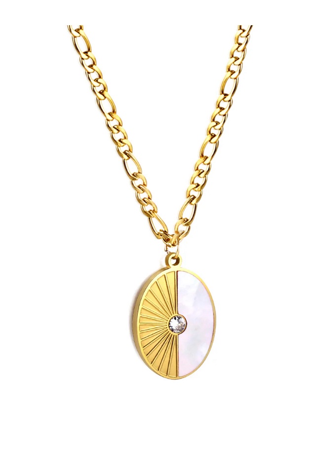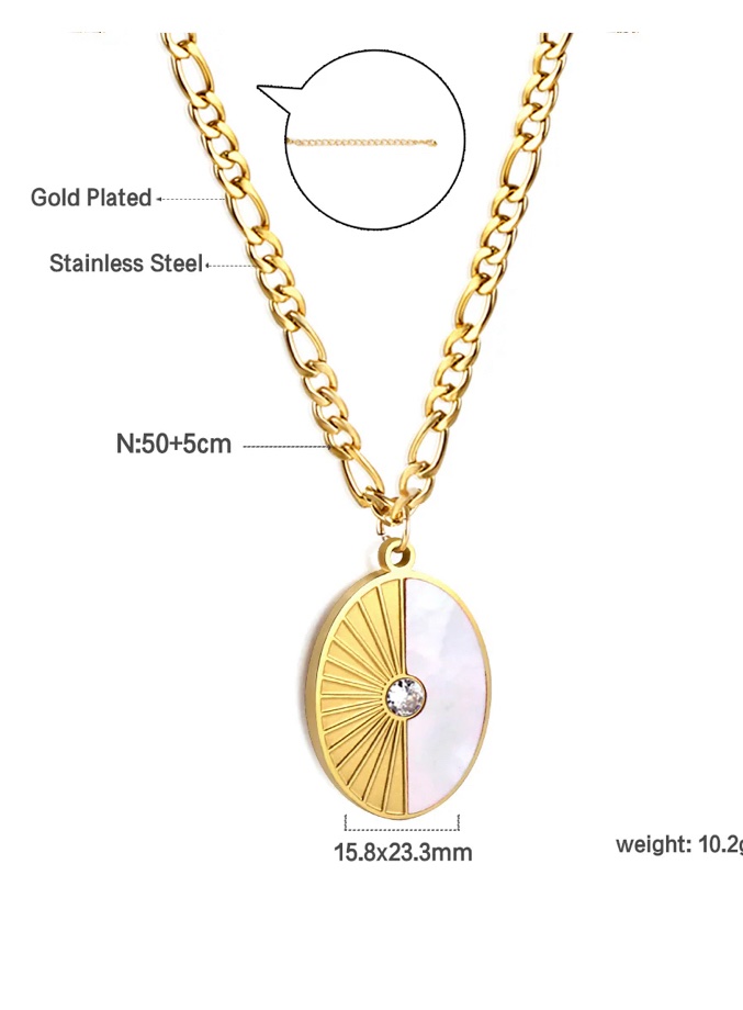 This delicate Oval with Half White Shell with Diamond Pendant Necklace is an excellent addition to any jewelry collection. Crafted with a 50+5cm chain and set with a sparkling diamond, this necklace is an eye-catching statement piece.
